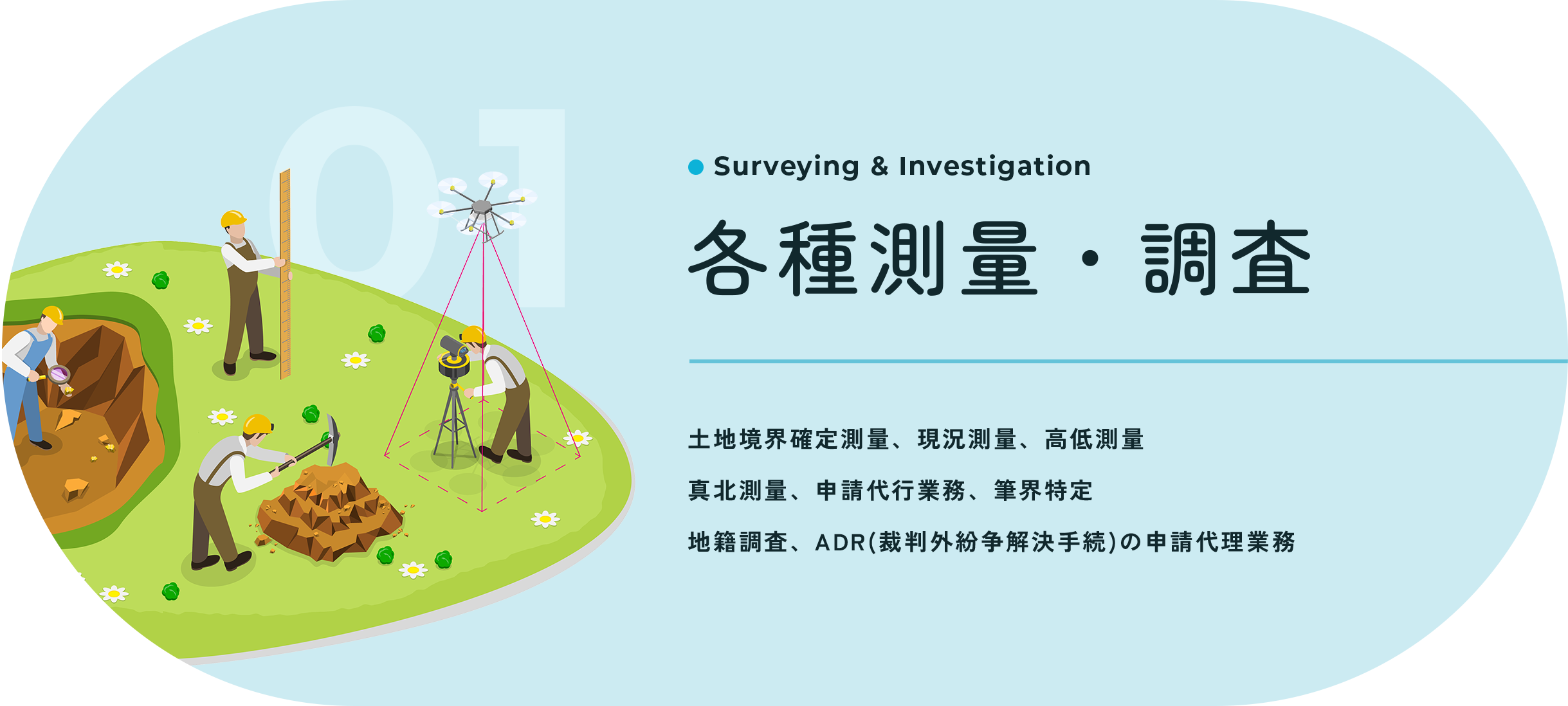 各種測量・調査や登記に関する業務を行っております。